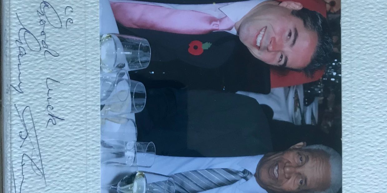 Sir Garfield Sobers, the greatest all-rounder of all time, wishing East Bergholt Cricket Club well on their endeavours during a dinner with EBCC Chariman in Barbados.